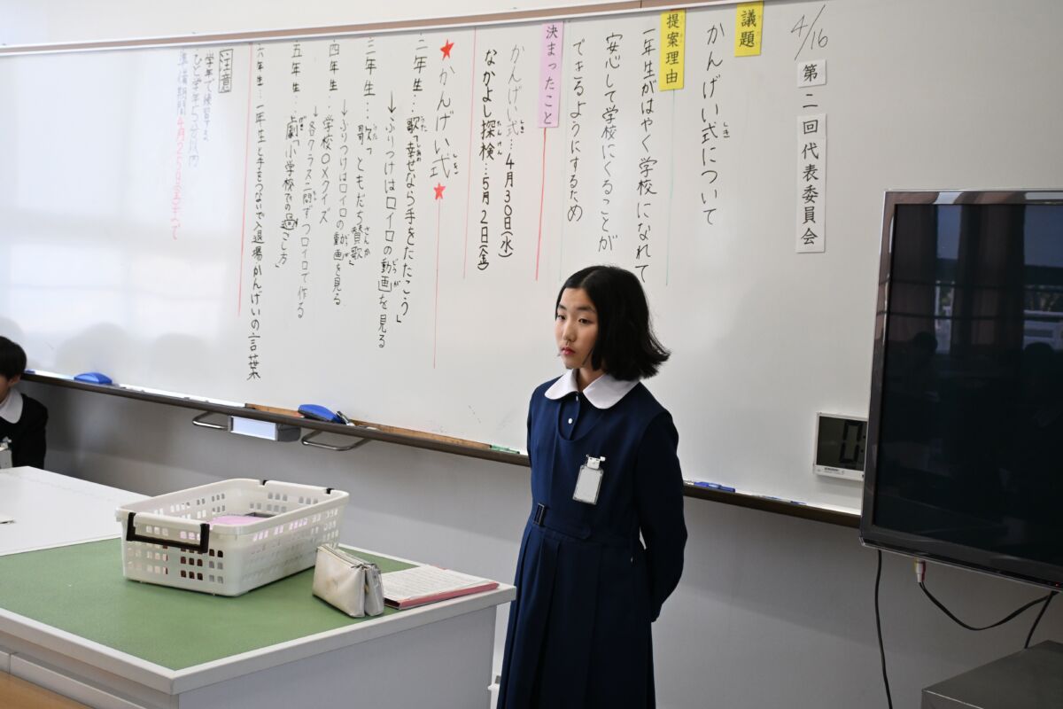 代表委員会の子どもたちはお昼休みに少し時間をとって会議を行いました。議題は「1年生歓迎式」。学年ごとの出し物の報告と、練習の仕方などの確認をしました。6年生の企画委員がしっかり会を進めていました。1年生から6年生までみんなで楽しい時間になるといいですね。