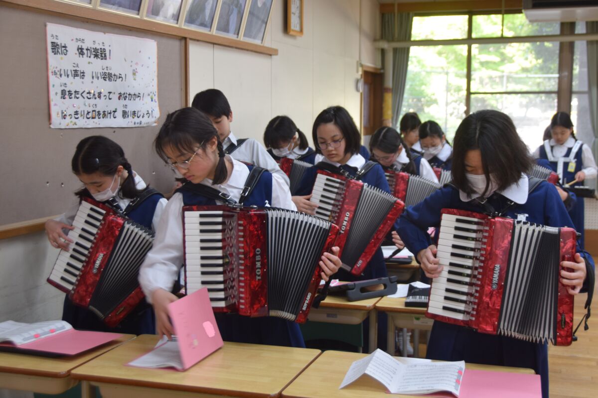 はやいもので、6年生の鼓笛演奏の練習が始まりました。演奏を披露する大運動会は5月25日に行われます。大運動会では、2月の学習発表会で披露した「ルパン三世のテーマ」に加えてみんなで選んだ、いきものがかりの「じょいふる」も演奏します。