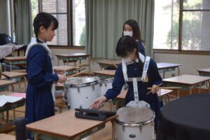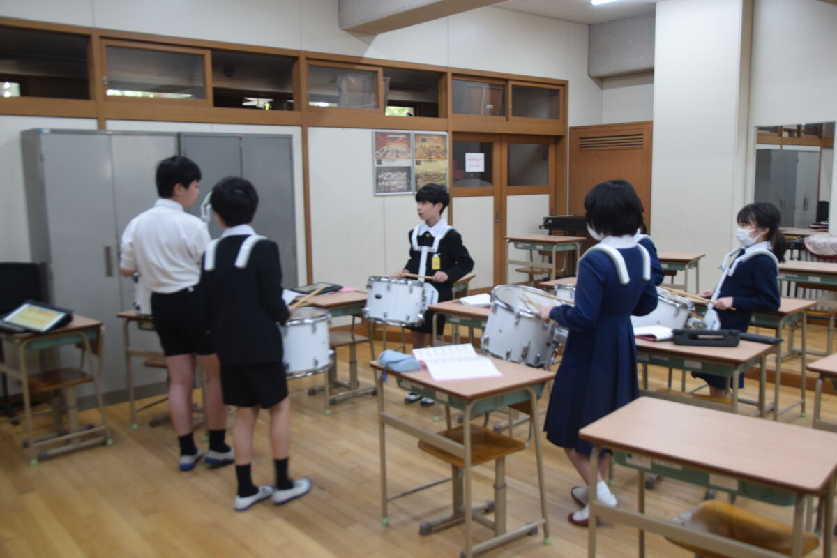 この日はパートごとに分かれてそれぞれで練習していました。これからひと月でどのように仕上げていってくれるのか、楽しみです。明治学園小学校の第59期鼓笛隊(6年生)の皆さん、素敵な演奏になるよう頑張っていってくださいね。