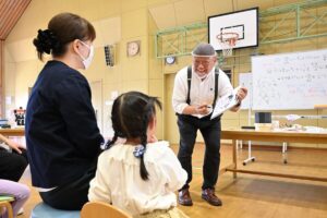 明治学園小学校ではこの日、年長児のお子さんを対象に「わくわく講座」を実施しました。今回講師にお招きしたのは小倉北区にギャラリー&工房「自由空間」をかまえる松岡忠夫さんです。
