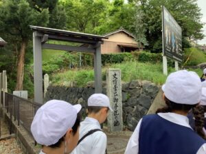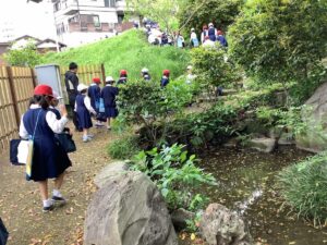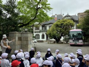 天籟寺商店街の様子や、菅原神社の向かいにある菅原公園の「菅公御手洗の池」も見ましたし、一枝の旧松本邸(国指定重要文化財)では少し時間をとって、外から立派なお屋敷を見ることもできました。明治学園にとっては初代理事長の松本健次郎先生の旧宅です。