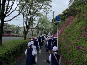 社会科の授業の一環で、3年生はこの日町探検に出かけました。地図を持って学園から近い天籟寺(てんらいじ)、菅原(すがわら)、一枝(いちえだ)、夜宮(よみや)の地域を歩いて回りました。どんな施設があるか、場所による特徴や交通の様子などに着目しながらの探検です。
