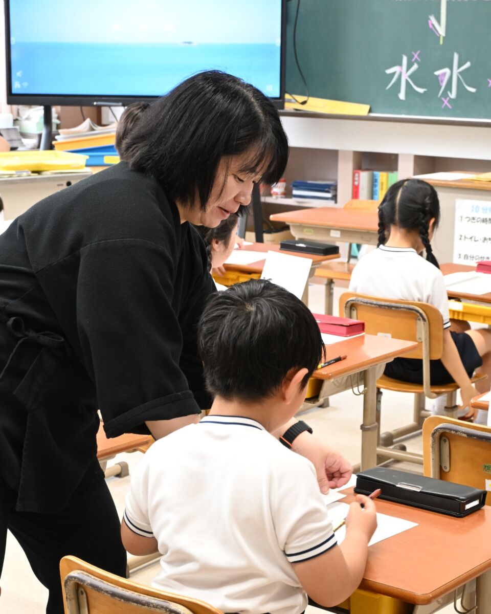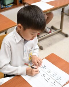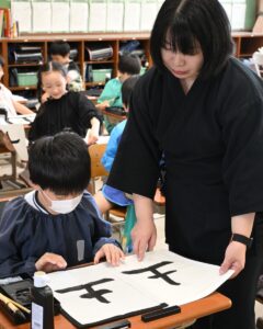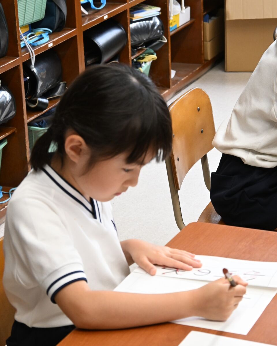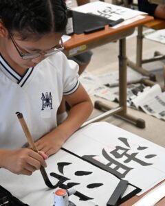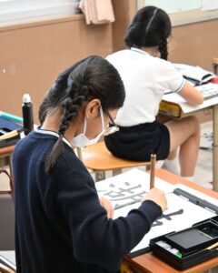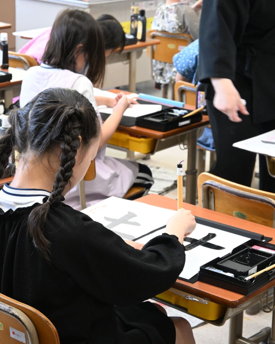 本校では夏休みをはさんで習字の授業が組まれており、2学期の文化祭で子ども達の書道の作品も展示されます。