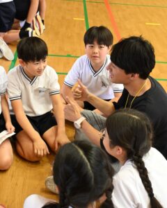 明治学園のお隣、九州工業大学の方を中心に留学生の方々をお招きして、5年生との交流会を行いました。