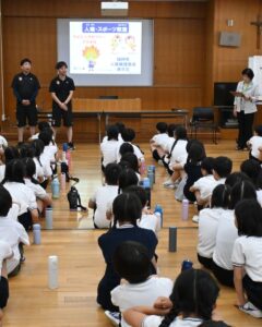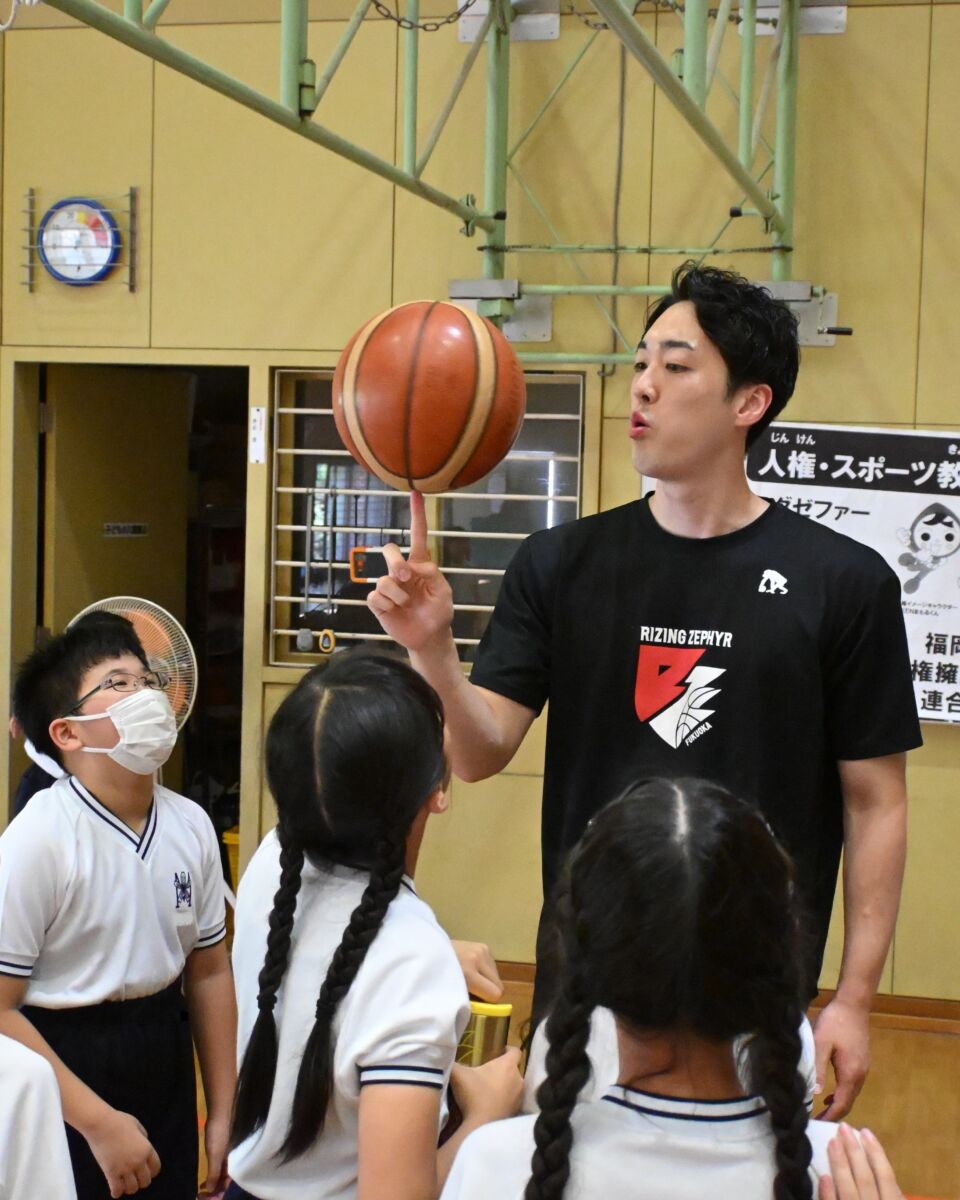 福岡県人権擁護委員連合会の方々といっしょに来てくださったのは、プロバスケットボールチーム、ライジングゼファーフクオカの加藤寿一選手とスタッフの皆さん🏀
