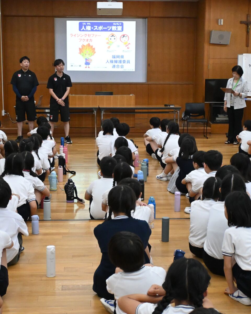 福岡県主催の「人権・スポーツ教室」に抽選で選ばれ、5年生が参加しました。
