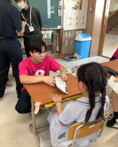 明治学園高等学校の課題研究「防災・減災班」DPOMsの先輩方が、ゲストティーチャーとして4年生に教えにきてくれました。