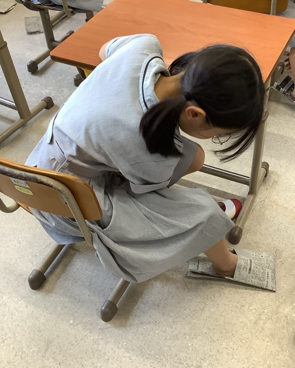 教わったことの一つが「新聞紙で作るスリッパ」。