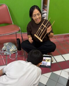 英語での説明を一生懸命に聞く姿、ビデオやスライドに歓声を上げる様子や、みんなでゲームに興じる様子はとても印象的でした。そして民族衣装を着せてもらったり、楽器を弾かせてもらったりして大喜び。自分からすすんで質問できた子どもたちもたくさんいました!