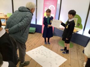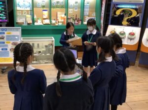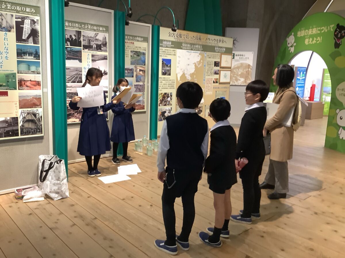 午後は環境ミュージアムへ移動しました。4年生はこれまで時間をかけて北九州の公害とその克服の歴史、現代の環境問題について学んできました。この日は実際に自分たちが担当する持ち場に立ち、本番を想定した練習を行いました。