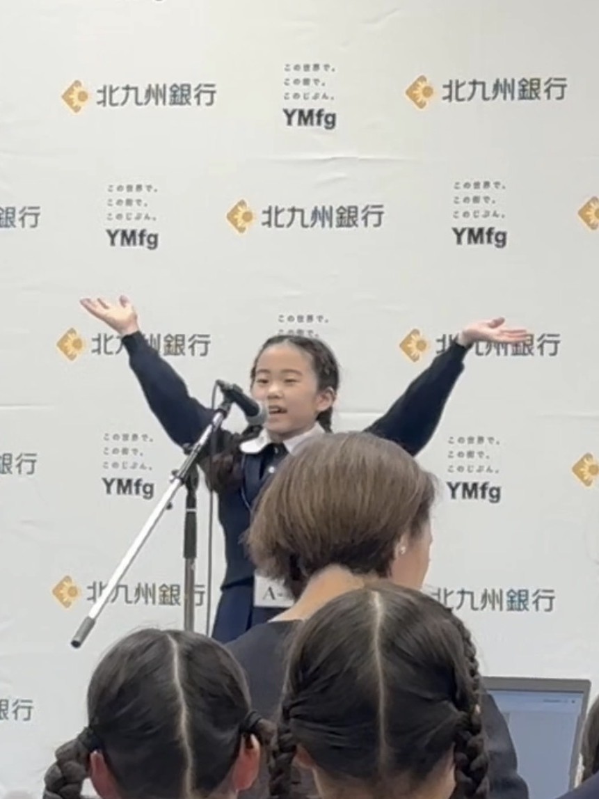 北九州銀行杯スピーチコンテストで明治学園の子どもたちが素晴らしい成果を収めました! 北九州銀行主催で開催された小中学生を対象とした英語スピーチコンテストに、明治学園小学校の子どもたちが挑戦しました。 うち、3名が本選へ進み、4年生の坂東大輝さんが4年生〜6年生グループの第3位に入賞しました‼️👏👏 コンテストに向けてひたむきに努力した子どもたち⭐️ 挑戦した全ての子どもたちに拍手👏👏 ※個人名の掲載に当たっては、ご家族の承諾を得ております。