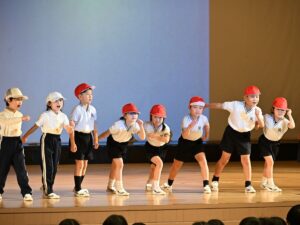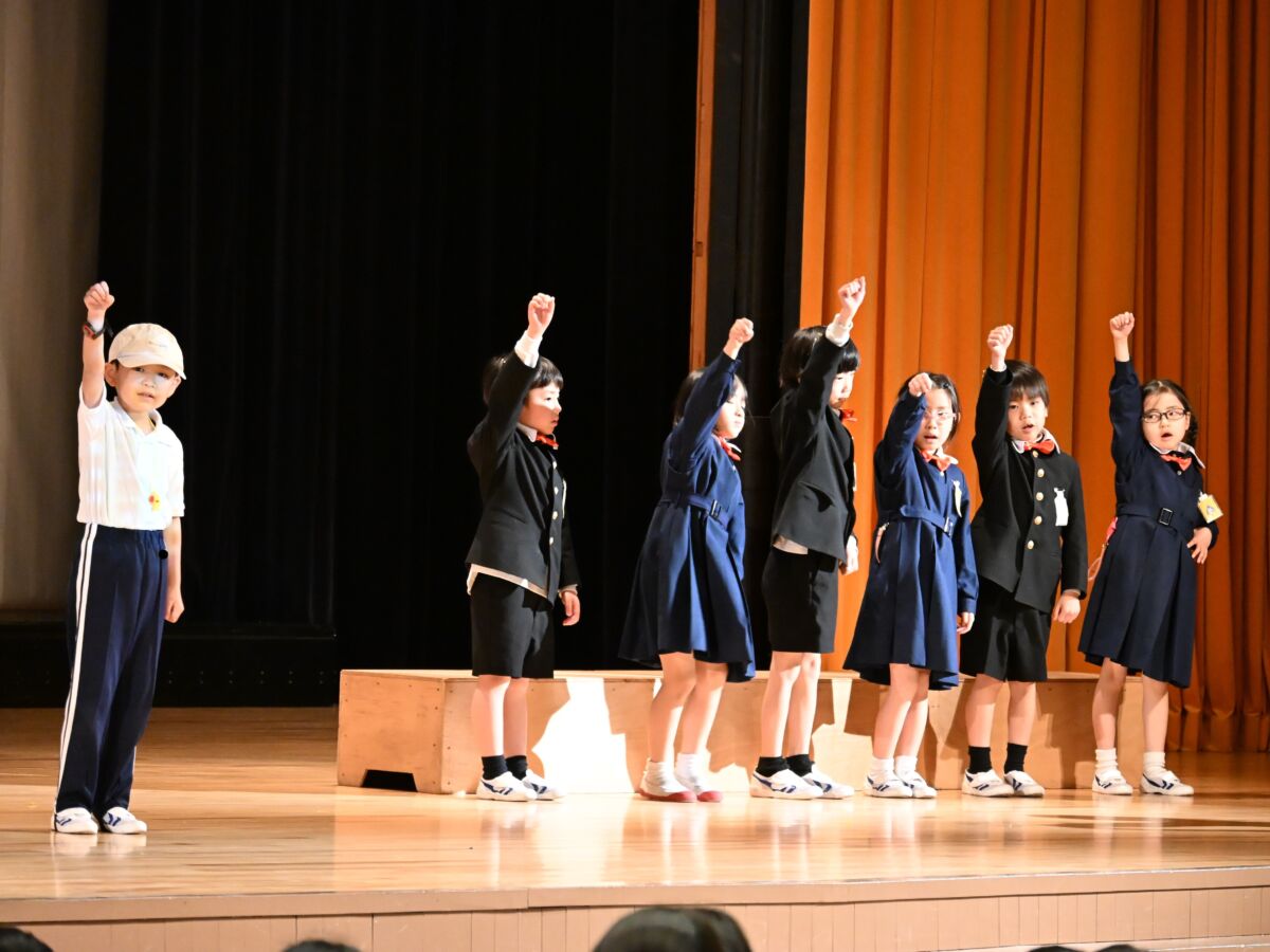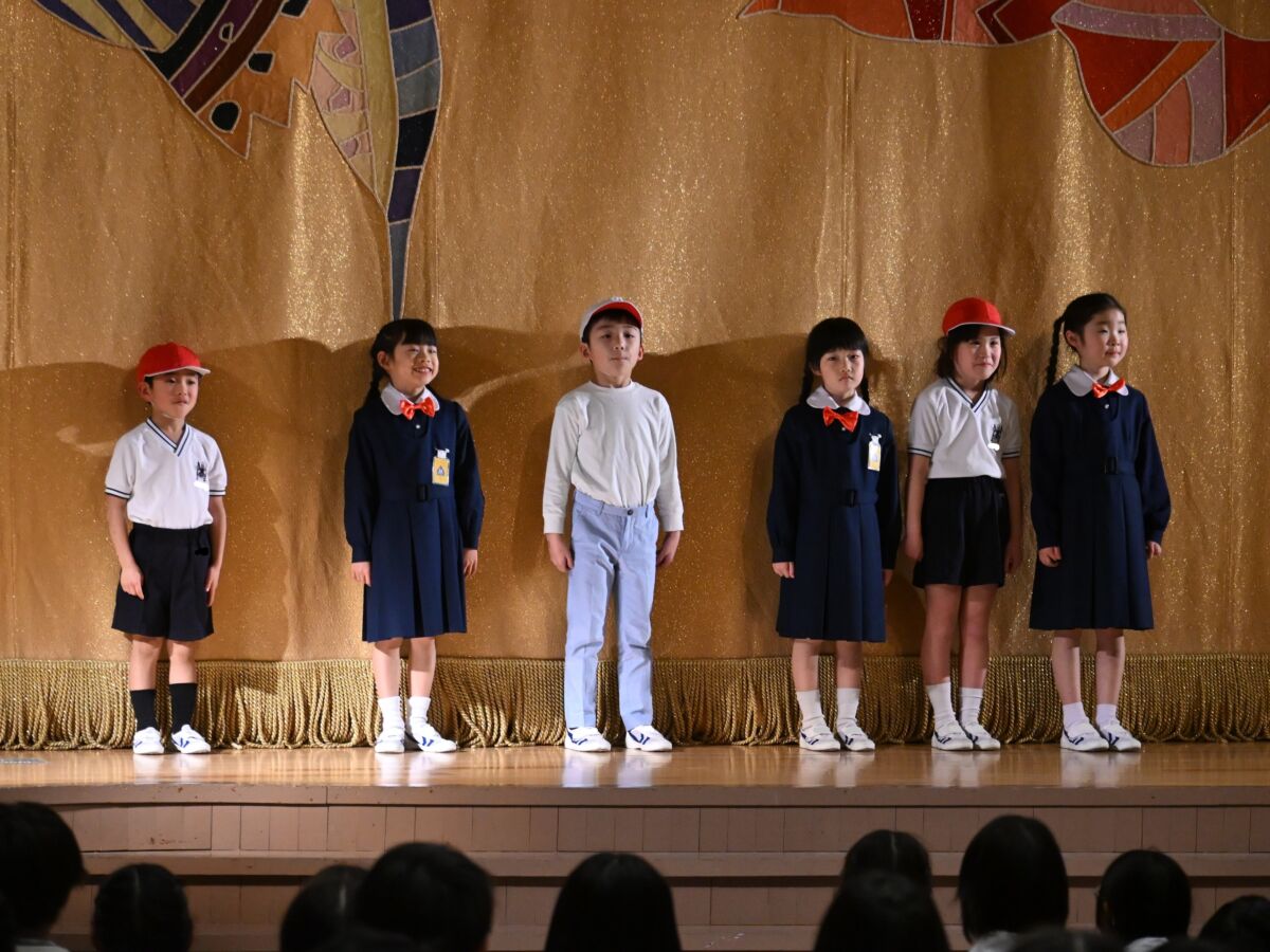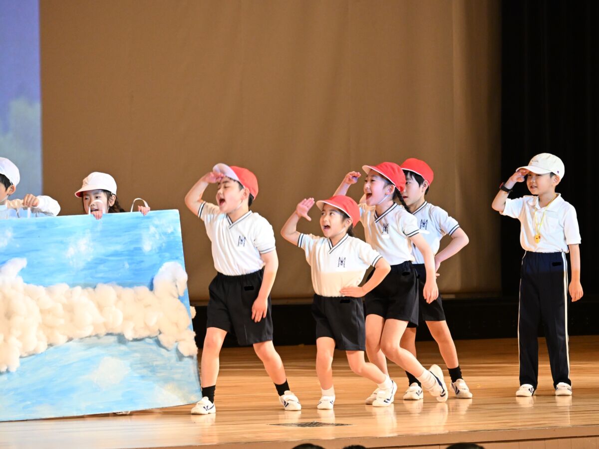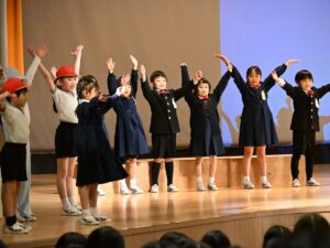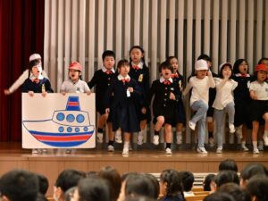 1年生の演目は「くじらぐものぼうけん」でした。緊張もしたと思いますが、元気いっぱいにセリフを言ったり、みんなで声を合わせて歌を歌ったりすることができました。場面転換の入れ替わりや、場所の移動などもとっても上手でした!学年の締めくくりに、よい思い出ができましたね。