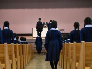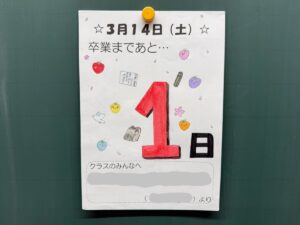 3月16日は明治学園小学校の卒業式です。卒業式の練習も、回を重ねるごとに動きがきれいになりました。授業はすべて終わり、残すところは卒業式の式典と最後のホームルームだけです。