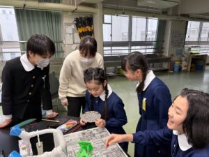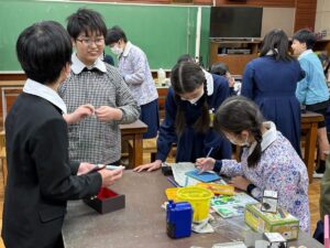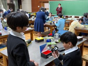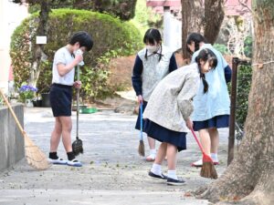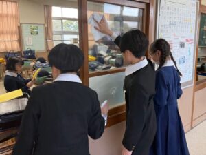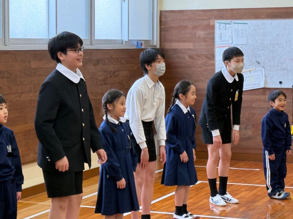 みんなで6年間の思い出の詰まった明小のあちこちを掃除してくれたり、片付けが終わったクラスは1年生といっしょにゲームをしたりして小学校生活の最後を過ごしていました。