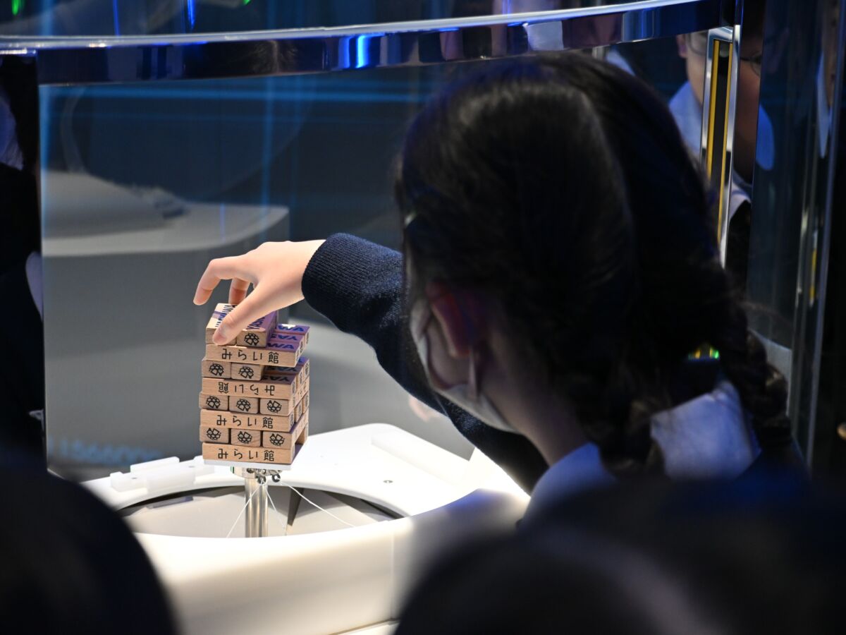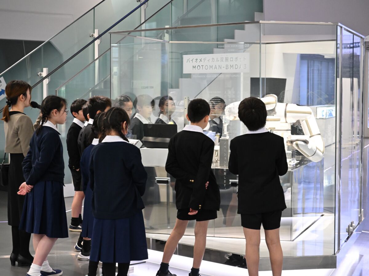 安川電機は、ロボットアームやモーター、インバーターなどの技術で広く知られています。子どもたちは、敷地内にある安川電機みらい館で、実際にロボットと対決をするなどし、楽しく見学しました。