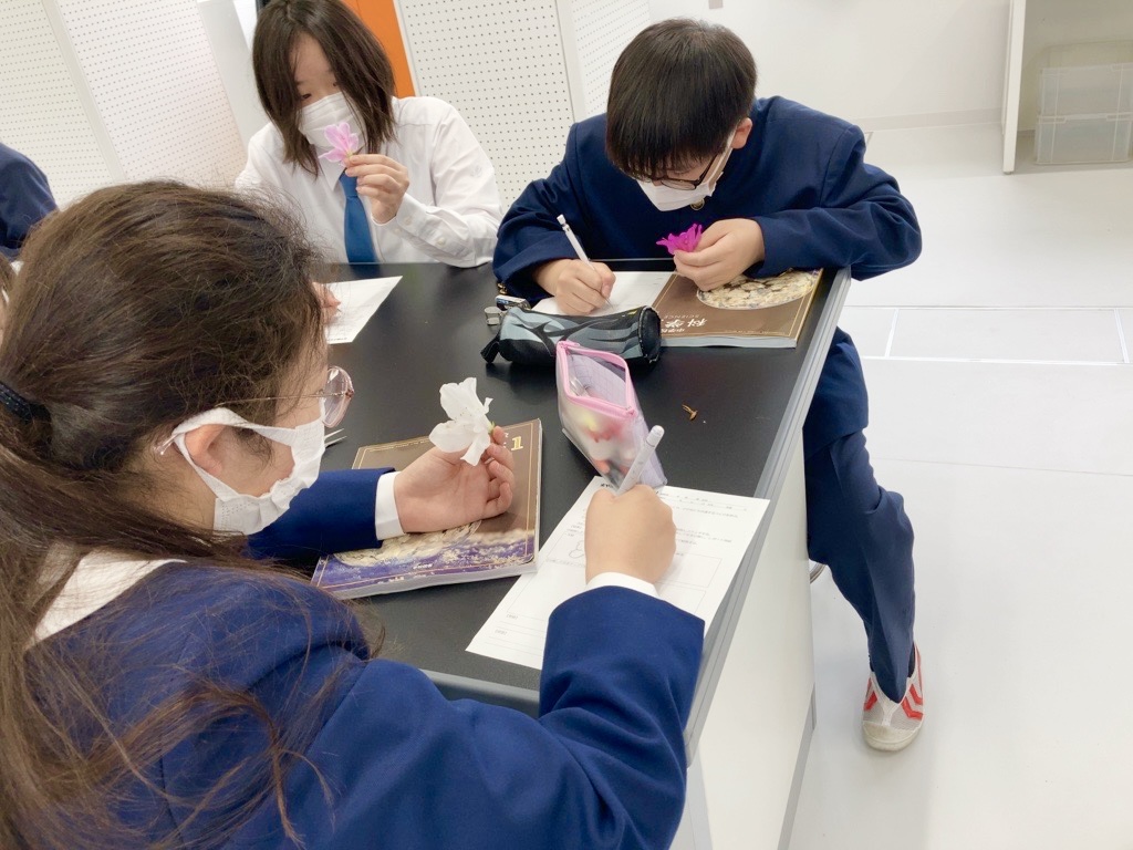 さらに別の日にはツツジの花を観察し、スケッチを通して花のつくりを詳しく学びました。実際に自分の目で見て触れることで、生徒たちは教科書だけでは得られない気づきや驚きを体験し、身近な生き物への興味を高めていました。