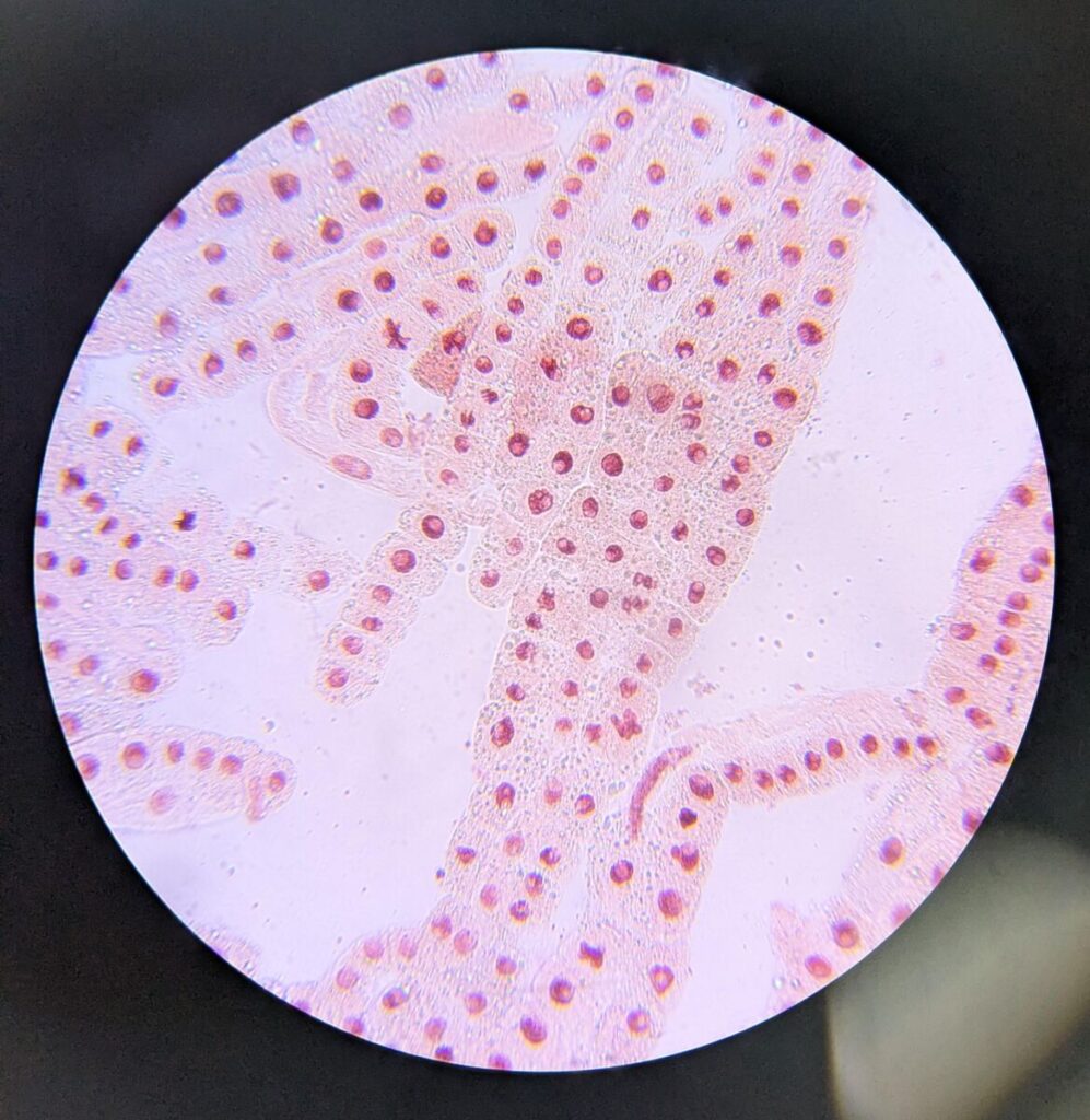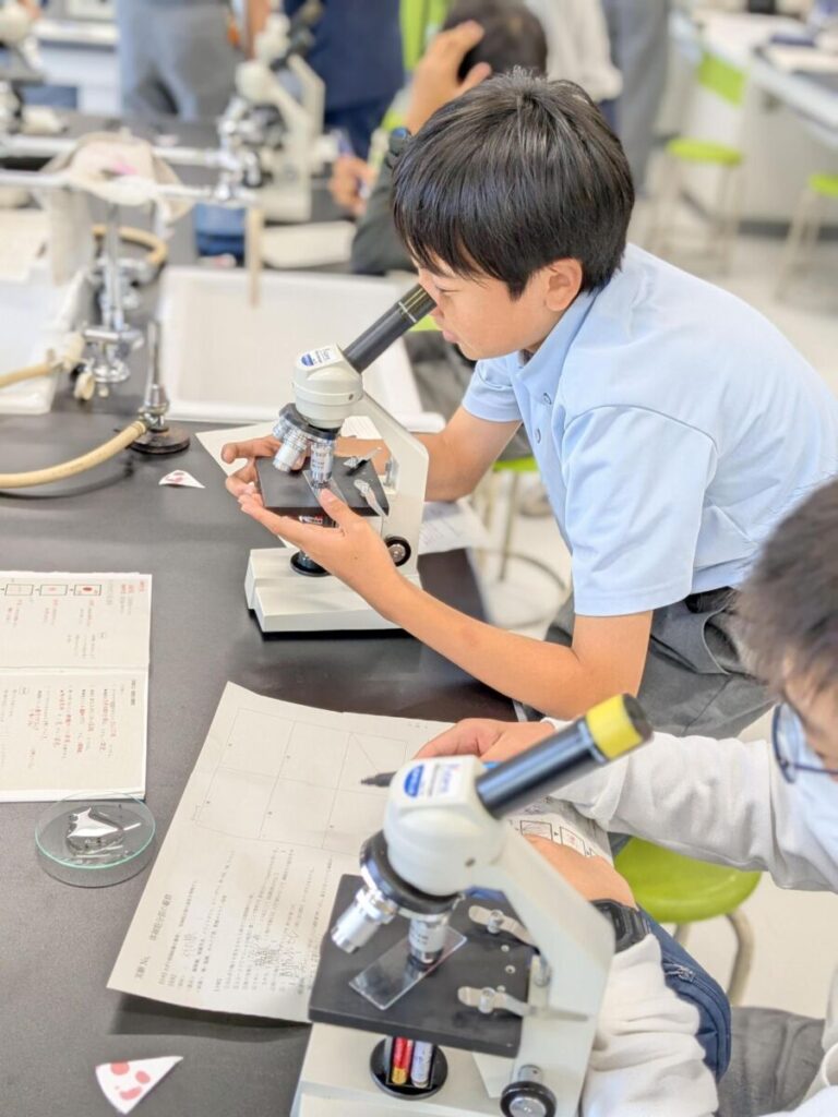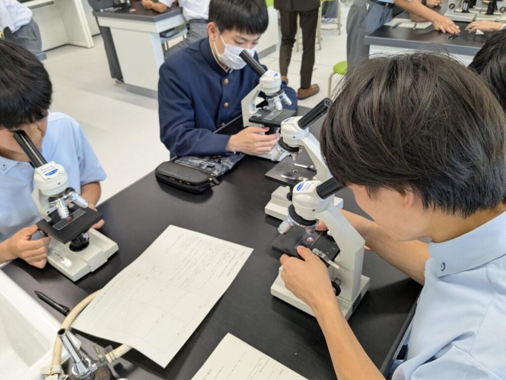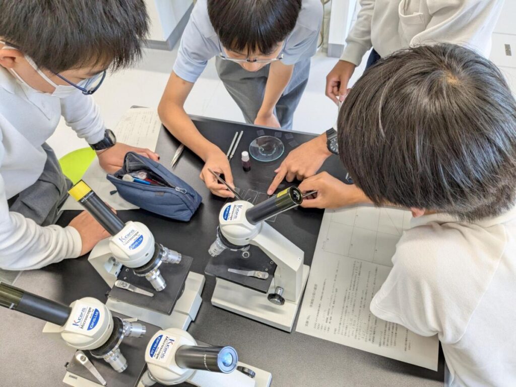 ネギの根の”体細胞分裂”を観察。 顕微鏡のピントが合った瞬間、視界に広がるリアルな細胞分裂の様子に感動の声が! 授業で学習した分裂の過程を実際に顕微鏡で見ることで、生命の不思議に触れました。