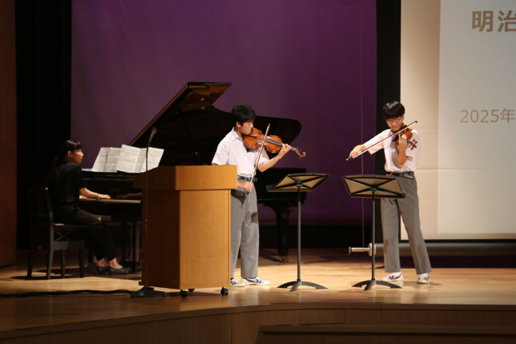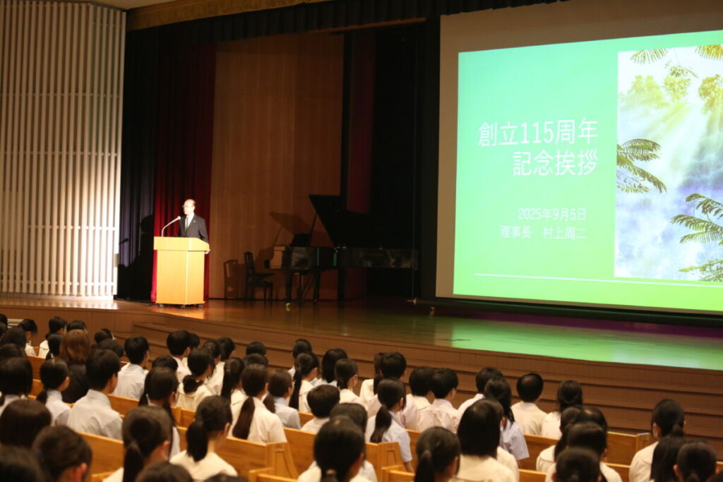 9月5日(金)学園講堂で創立者記念式典を行いました。生徒たちは美しいヴァイオリンの演奏とともに入場。