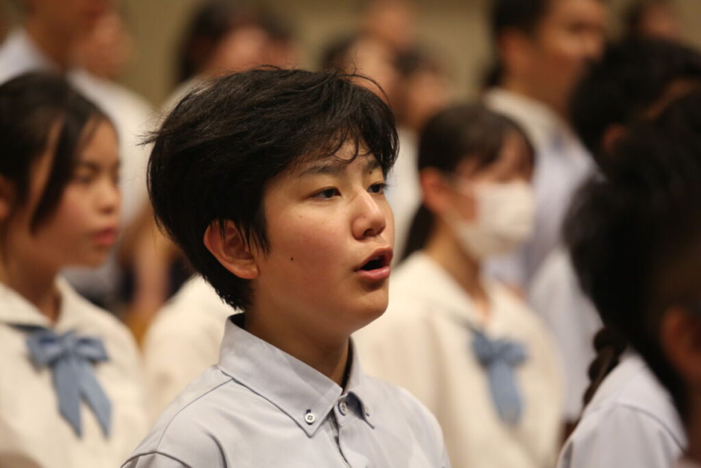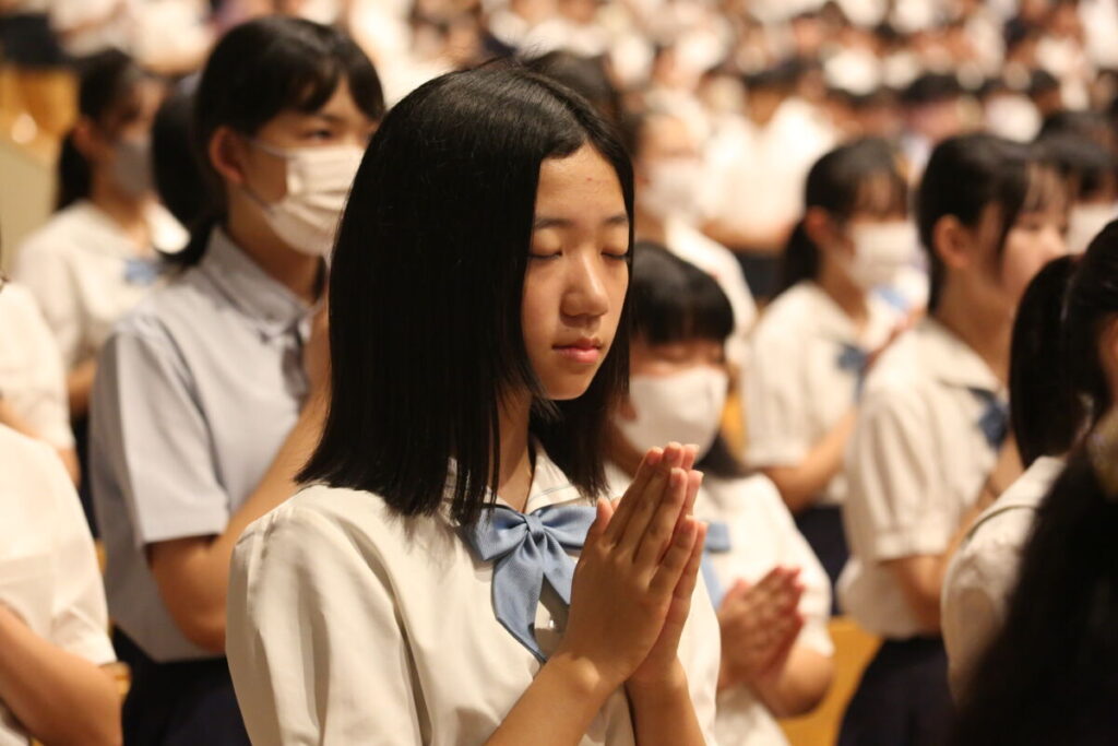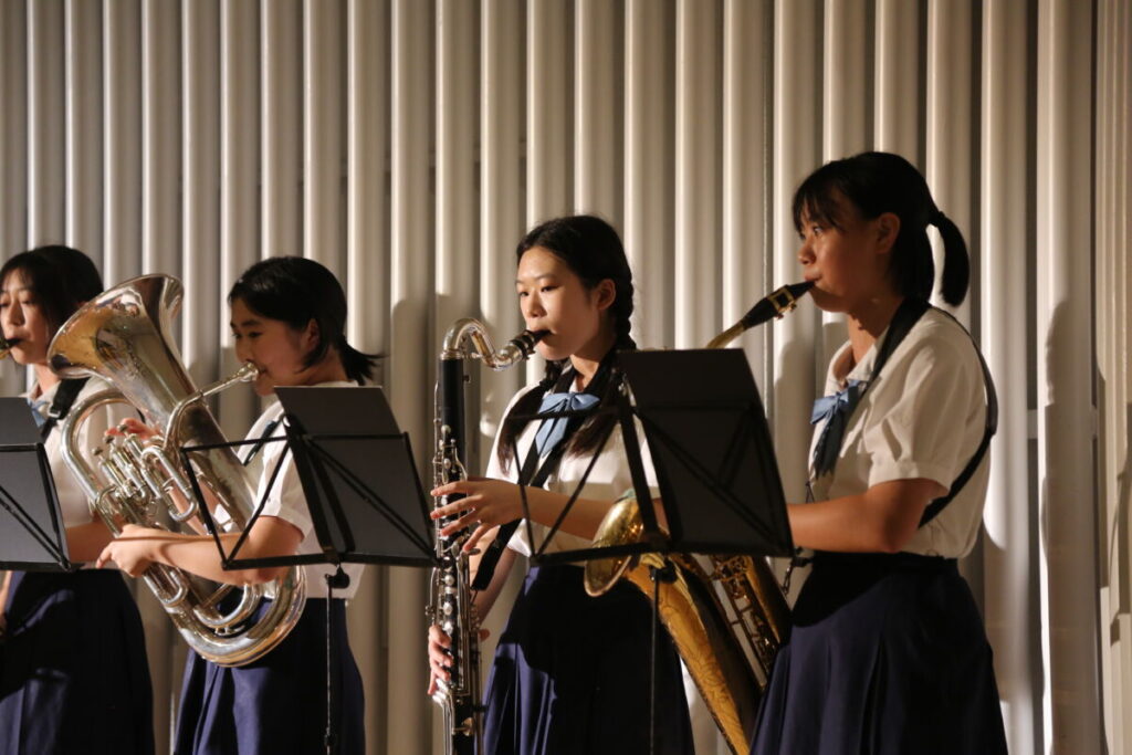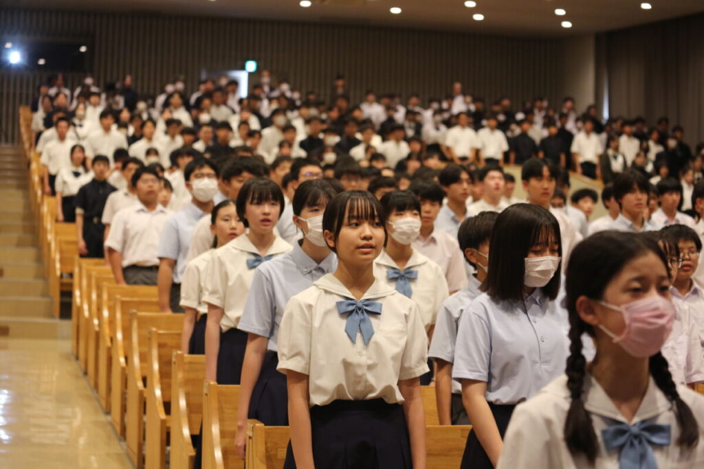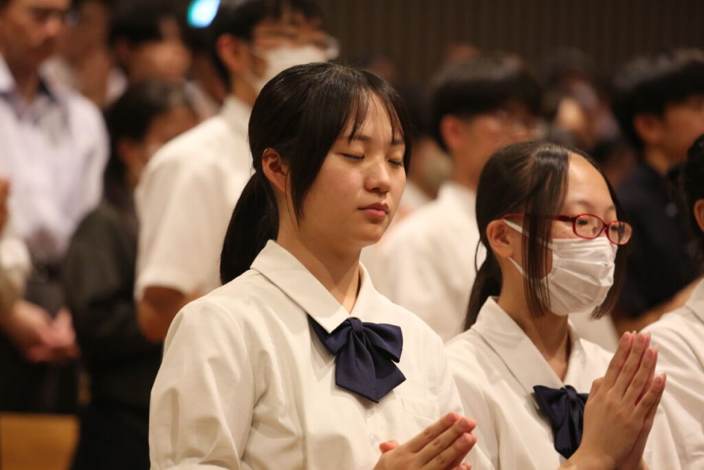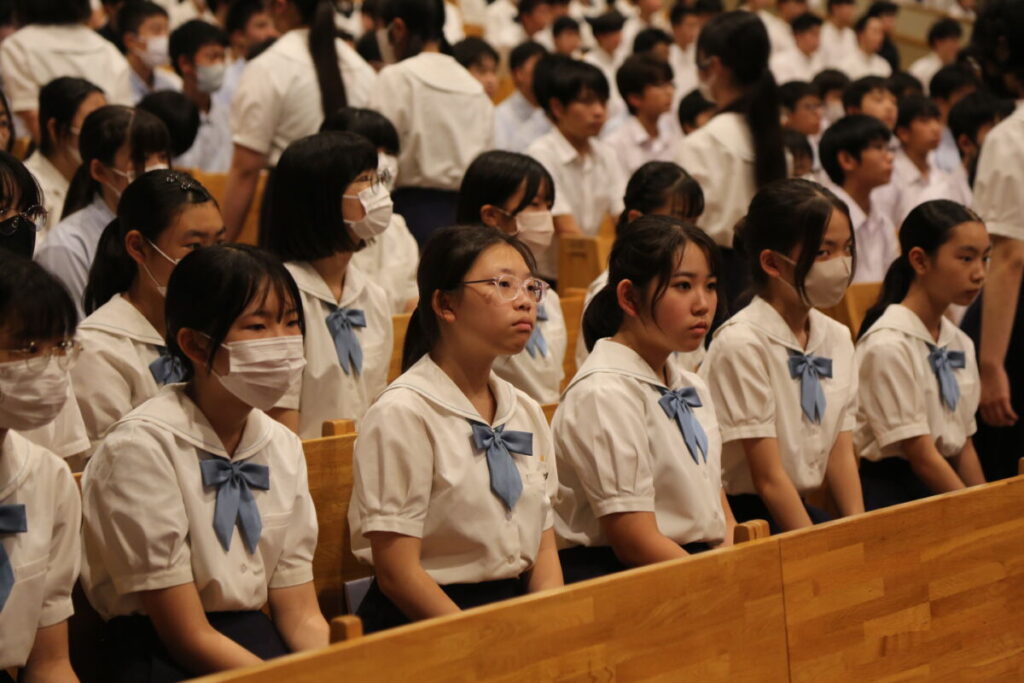 6学年揃ってのお祈り、美しい歌声での賛美歌・校歌斉唱は115年目の記念式典にふさわしいものでした。式典を終えた生徒たちは吹奏楽部の演奏に見送られて、学園講堂を後にしました。