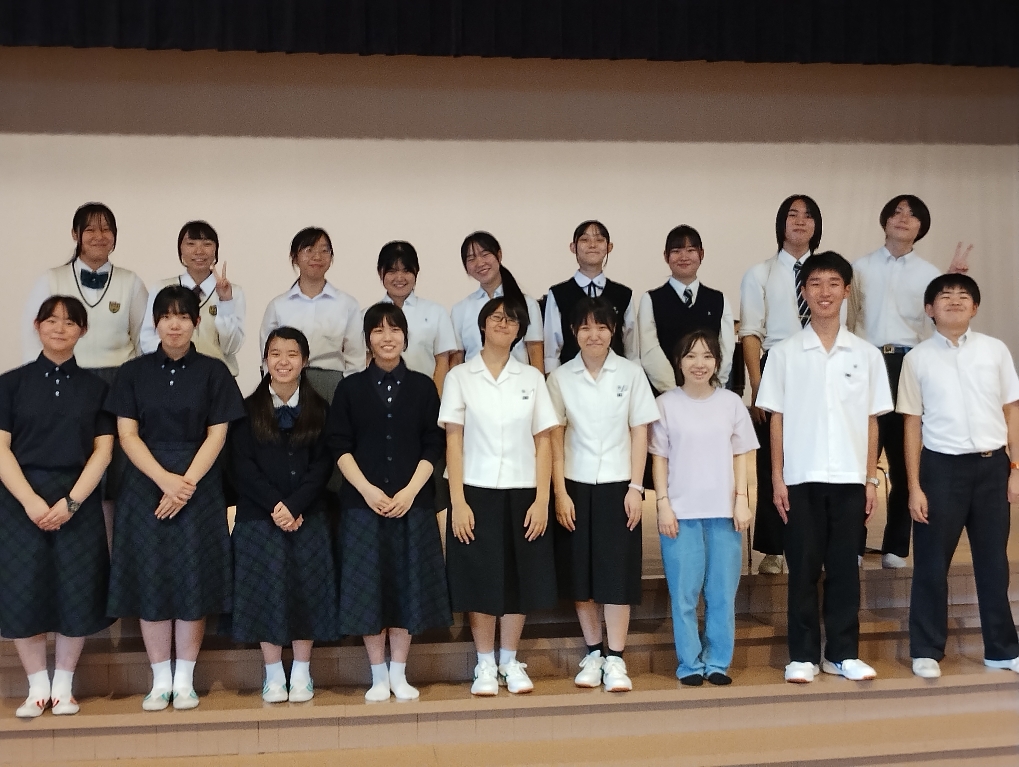そして他5校と一緒に32名での合同合唱にも出演しました。合同でのさわやかで豊かな歌声は、多くのお客様の感動を呼び、涙ぐむ方も。10月19日(日)に直方市のユメニティのおがたで行われる県大会でも二つの演奏をご披露して参ります。応援をよろしくお願いします!
