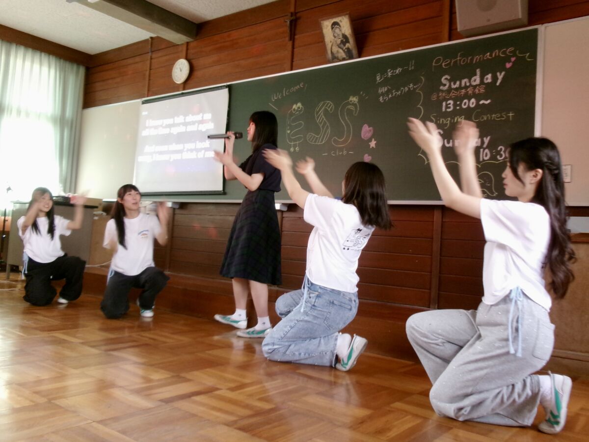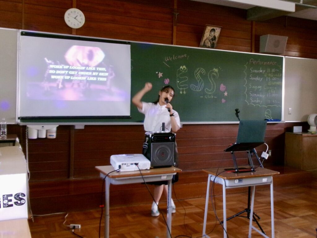 Some special guests, like the vice principal, the principal, and our ESS club advisor, Mr. Fukuzono also sang on stage. Everyone was so surprised and excited! It was a fun time.