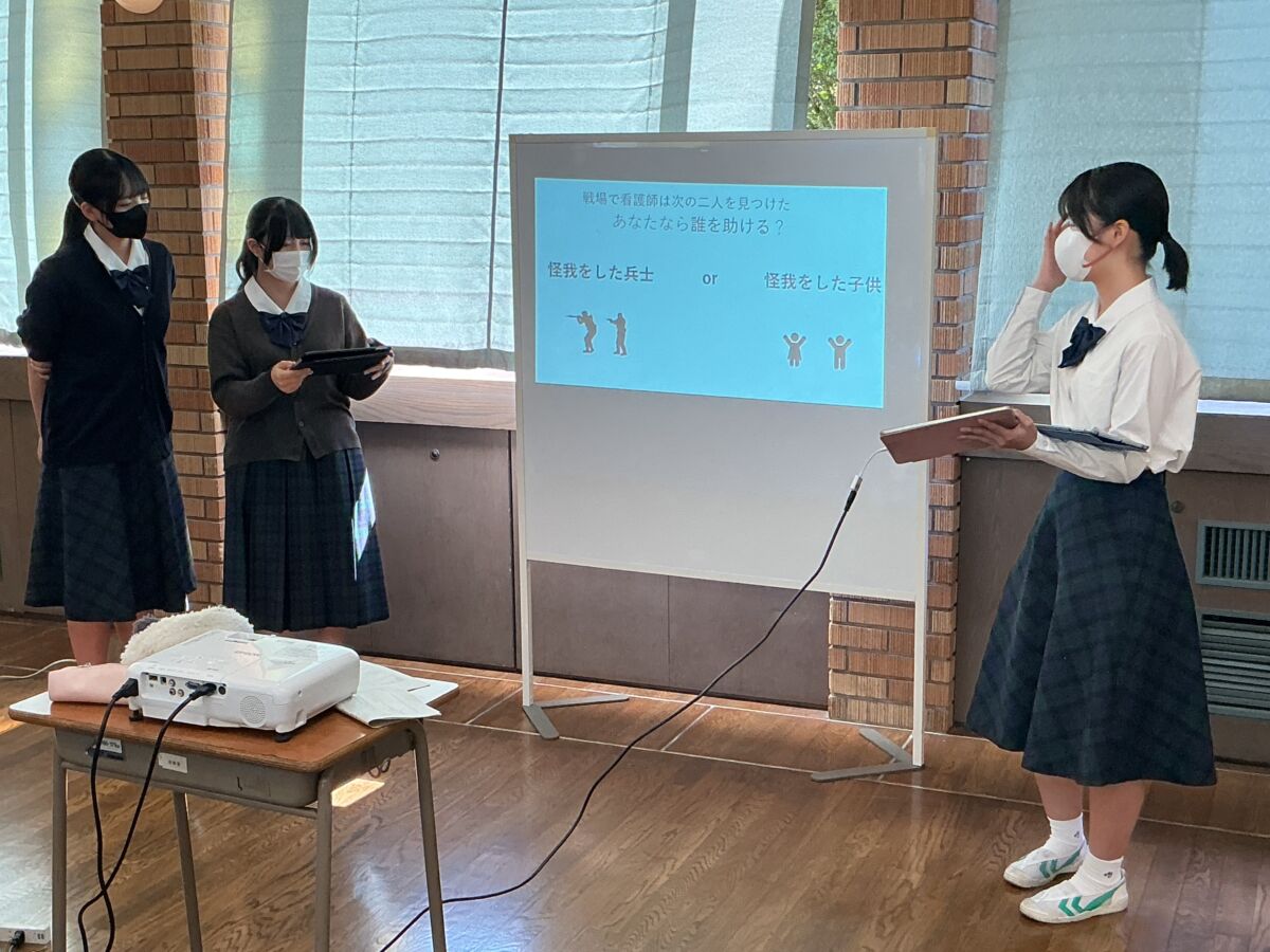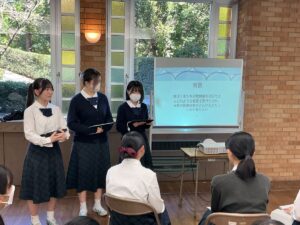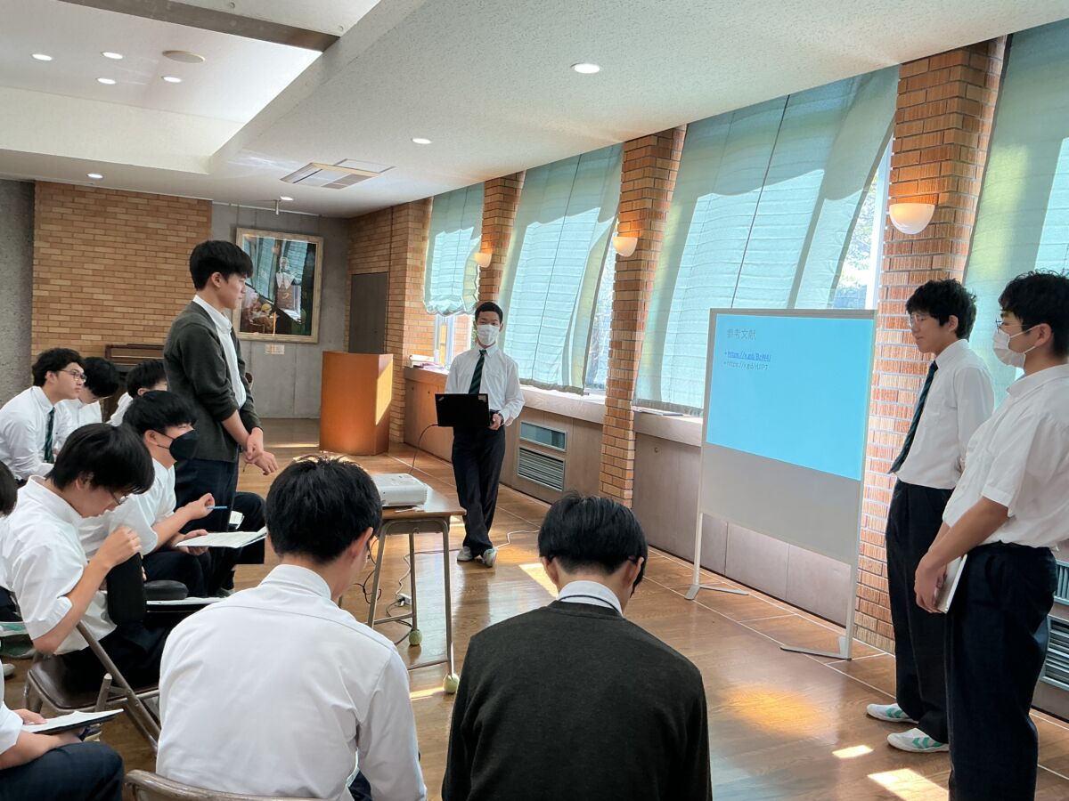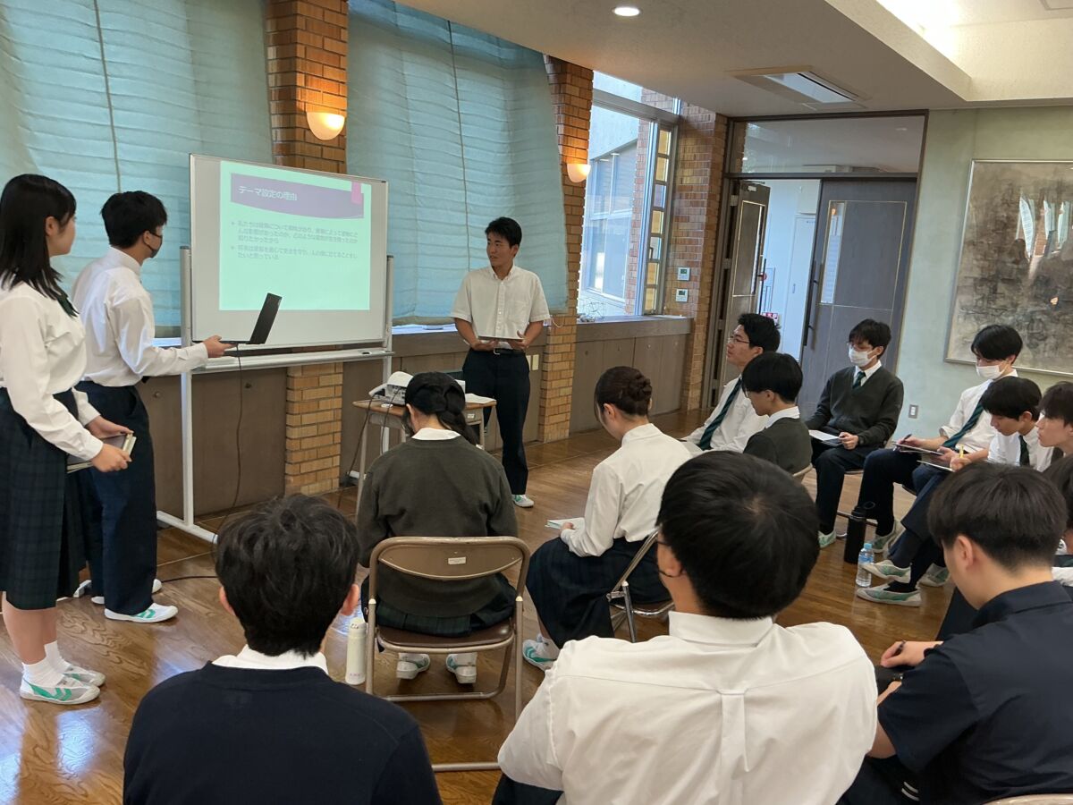 「自分が進みたい学問分野、自分の興味から平和な社会づくりにどのように関わっていけるか考えよう」というテーマで取り組んだことについてグループ発表をしました。