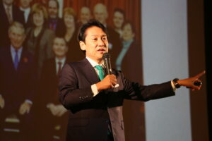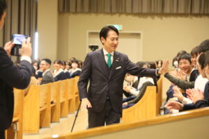 明治学園に武内北九州市長をお迎えし、「白熱教室~武内北九州市長とミライを語ろう~」を開催しました。今回は、生徒がマイクを手に直接問いかけ、市長と対話しながら進める“参加型”の講演会。市長が語ったまちづくりの経験や挑戦の裏側、生の言葉で語られる実体験に、会場の空気は一気に引き込まれました。
