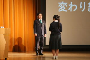 最後に井村生徒会長は、「変えない軸があるからこそ、私たちは前へ進めるのだと気づかされました。」「市長にいただいた応援を力に、私たちも未来に向かって歩んでいきます」と力強い感謝の言葉を述べました。