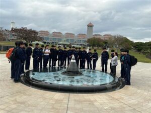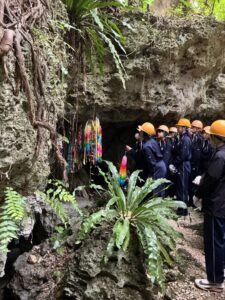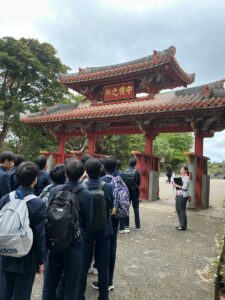 午後、糸数壕ではガマ(洞窟)の中に入り、その狭さと暗さを実感し改めて沖縄戦の悲惨さを体感しました。また、摩文仁の丘にある沖縄県平和祈念資料館と平和の礎を訪れ、資料館見学後、生徒たちによる平和の祈りを捧げました。平和の礎に記された戦没者の方々の、戦争のない世界や平和への願いに思いをはせながら命の尊さを再認識しました。