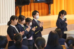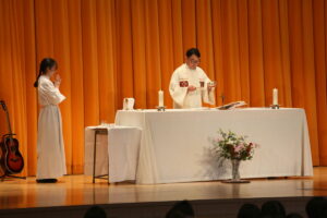 卒業ミサは明治学園での学びを終える高校3年生のこれからの人生が神様に守られ、実り豊かな日々を歩むことができるよう、祈りの中で行われます。