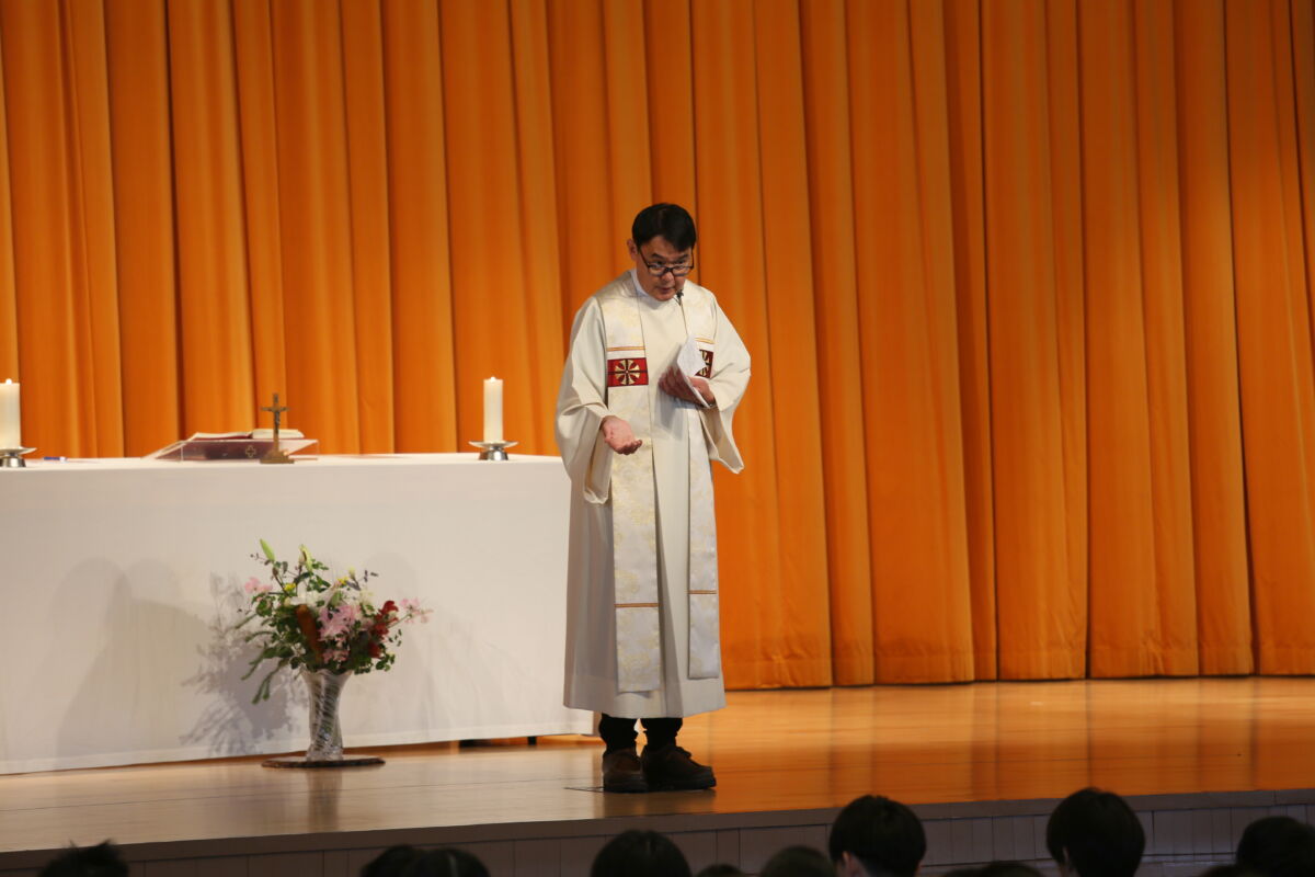 高校3年生に向けての卒業ミサが、関谷義樹神父様(サレジオ会)の司式で執り行われました。