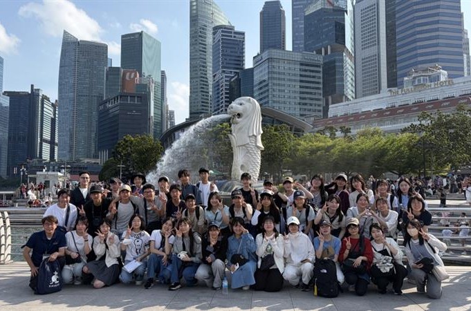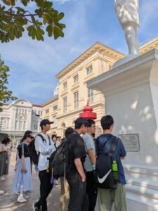 ラッフルズ像やマーライオン公園を訪れ、シンガポールを象徴する景観を見学し、写真撮影も行いました。