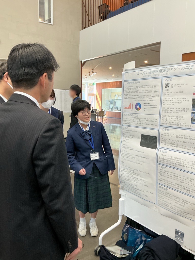 「外国人の方でも利用可能な防災アプリの開発」竹中映太、秋好吹輝、遠藤桜子、中田伊織(高校2年生)