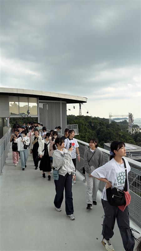 その後セントーサ島のシロソ地区を訪れ、フォート・シロソやスカイウォーク、第二次世界大戦をシンガポールの視点から紹介する展示を見学しました。これまで沖縄での修学旅行において学んできた平和学習と関連付けながら、異なる立場や視点から歴史を捉えることの重要性について理解を深める機会となりました。
