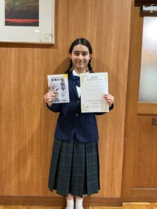 昨年度末に開催された第73回日本生態学会大会のジュニアポスター発表において、本校自然科学部のファウラー姫瑠さんが「審査員特別賞」を受賞しました。